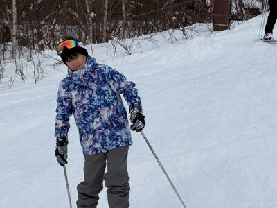 本日は、1.2年生のスキ-授業の2回目でした。お天気が良く、ゲレンデ状況も良く、みんなで楽しく学びました。「1回目よりも上達している」と褒められている人がたくさんいました。次回はラストになりますが、また晴天に恵まれますように。