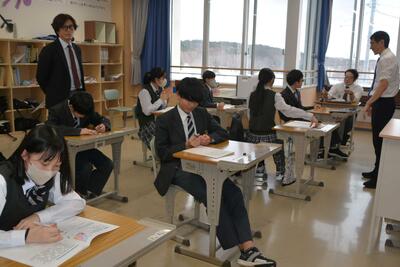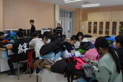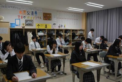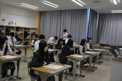 本日は、全学年の学力テストでした。生徒たちは、1年間の総復習テストと向き合い、真剣な表情で頑張っていました。6時間目は、テストを終えてホッとし、楽しそうに授業を受けていました。