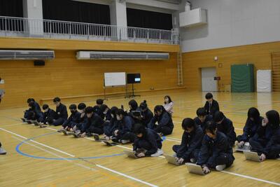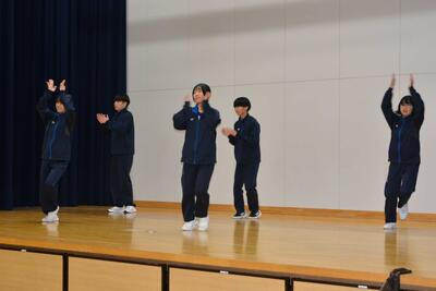 本日は、午後からは「子ども文化の集い」の振替なので午前授業でした。風邪(インフル)が流行ってきましたが、中学生は何とか元気に登校し頑張っています。あまり広がらないことを願います。4時間目の全校体育ではダンスの発表会がありました。どの学年も頑張っていました。