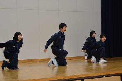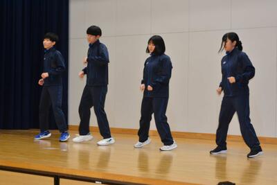 本日は、全校でリズムジャンプトレ-ニングを行いました。リズムに乗ってジャンプやステップを加えて行う、子どもから大人・スポ-ツ選手まで楽しく取り組めるトレ-ニングです。ジャンプ・回転・ステップを組み合わせ、みんな楽しく取り組んでいました。けっこうな運動量でしたが、子供たちはそのあとの授業や部活動もしっかり頑張っていました。