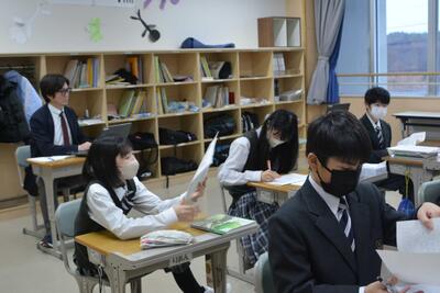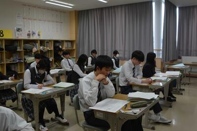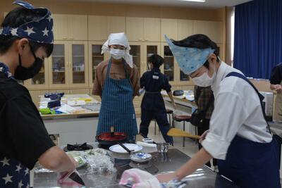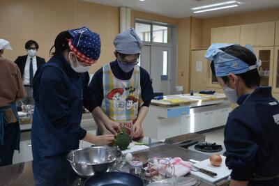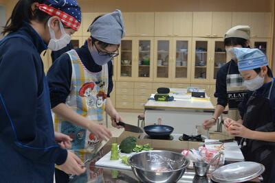 風邪(インフルエンザ)が流行ってきました。利中生は、体調を崩してしまった生徒も数名いますが、大半は元気です。昨日に後期・中間テストを終え、本日は返却されたテストの振り返りを行いました。1年生は、3,4時間目に調理実習がありました。班で協力し合い、ハンバ-グとブロッコリ-サラダを上手に完成させました。とても美味しそうでした!!