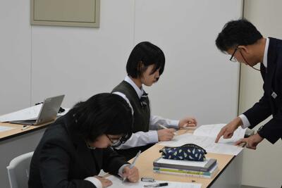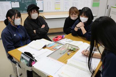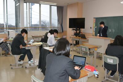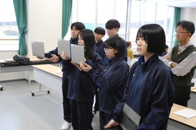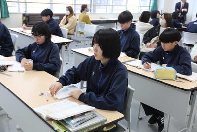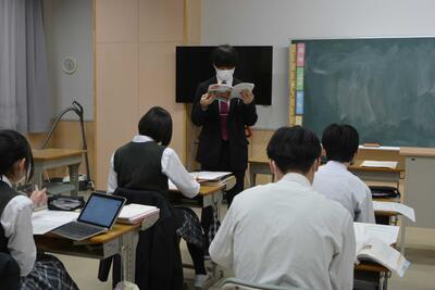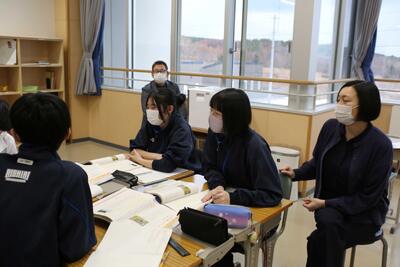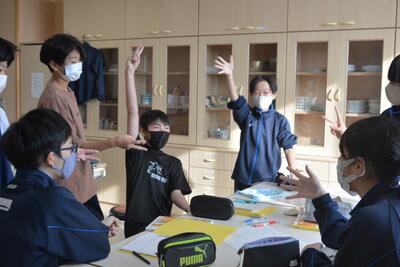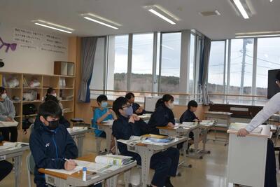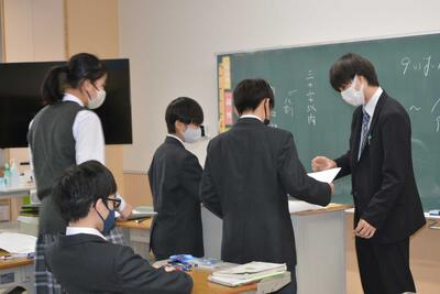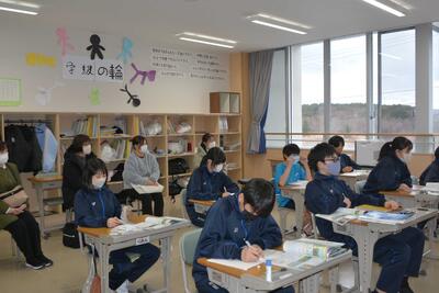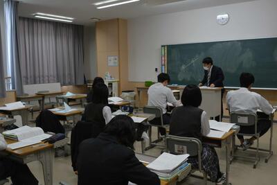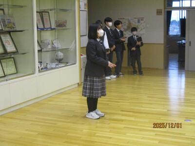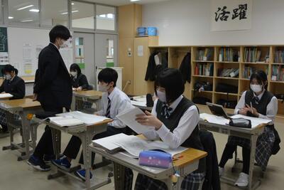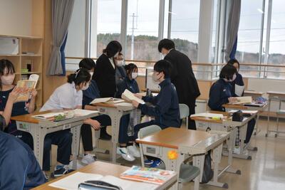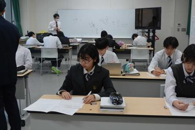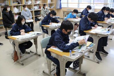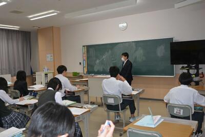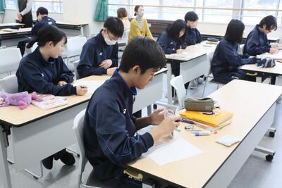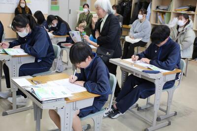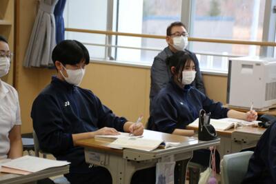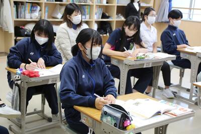 本日の午前は指導監訪問でした。千代指導監と宮道教育長が来校し、授業や学校経営のご助言をいただきました。また、5時間目は校内研究授業でした。中2国語の授業を通し、教科横断的な視点で、皆で学び合う良い研修となりました。