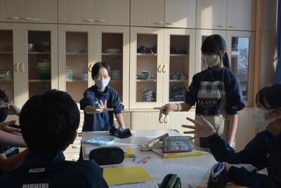 1・2年生は放課後の部活動を楽しく行っています。総合文化部は、「切りえ」の作品が完成しました。