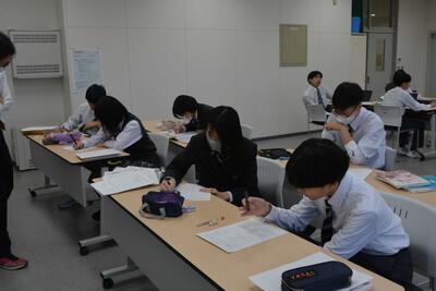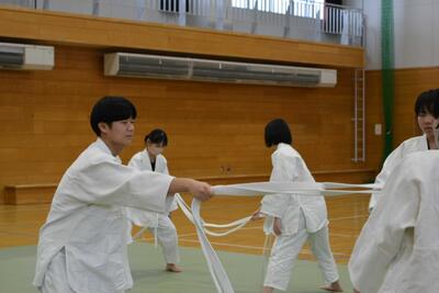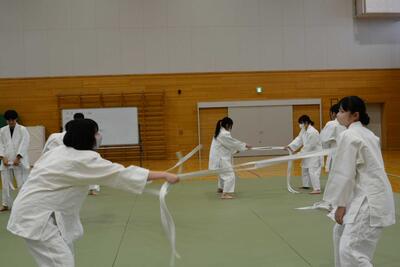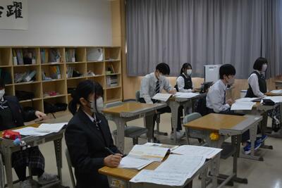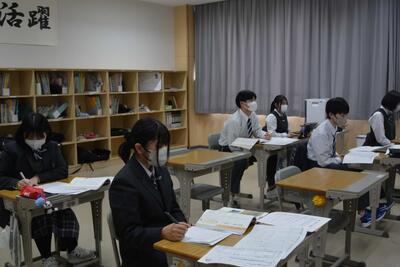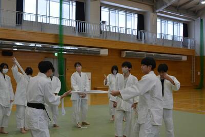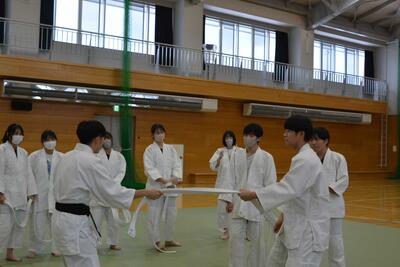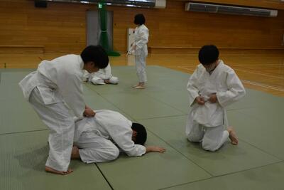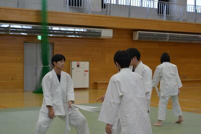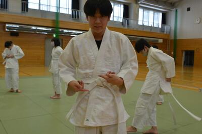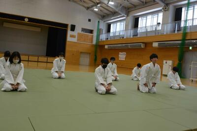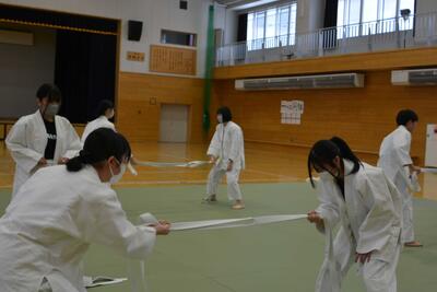 本日は、1・2年生は体育で柔道授業を行いました。本校の体育館に畳を敷き、柔道を着て基本動作を習いました。みんな、楽しみながら取り組んでいました。3年生は学力テストでした。進路の実現に向けて真剣に取り組んでいます。
