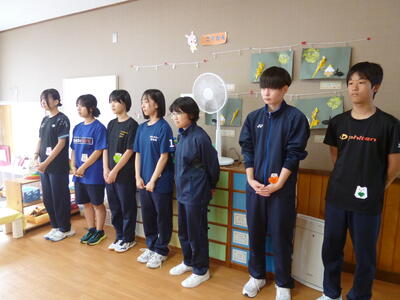 9月17日(水)の2・3時間目に、中3の生徒15名が沓形保育所を訪問しました。家庭科では「保育」を学習しています。幼児期の特性や成長など、学んだことを生かし実習をしました。かわいい幼児たちと遊んだり、お話をしたりし、楽しく良い体験となりました。