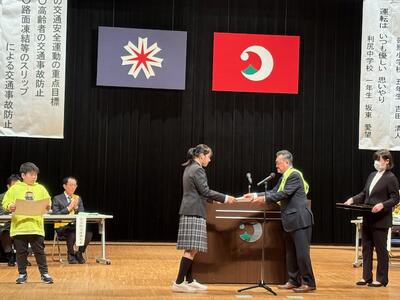 昨日に行われた利尻町交通安全大会において、本校生徒の交通安全標語が優秀賞に選ばれ表彰を受けました。「運転は いつも優しい 思いやり」 という標語です。