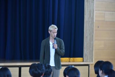 本日の6時間目に、プロサッカ-選手の本田 圭祐さんが来校し、病気や健康について学習しました。本田さんや医師の方が、健康な体を維持するためには、病気の早期発見や、積極的な検診が大切だということをお話してくださいました。子供たちは、少し緊張しながらも質問やクイズに答え、楽しく学習しました。