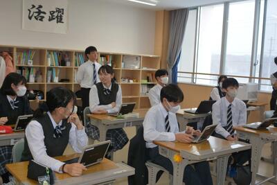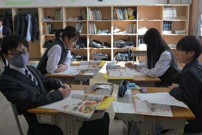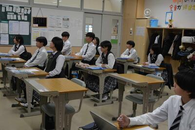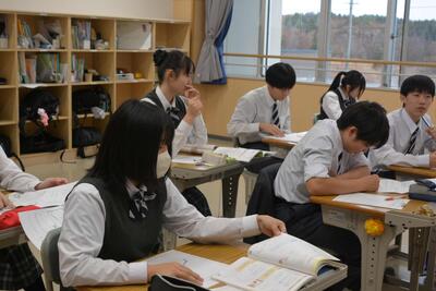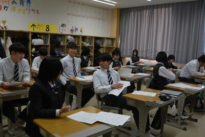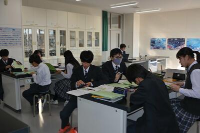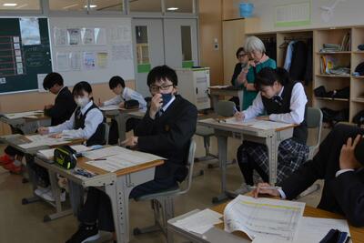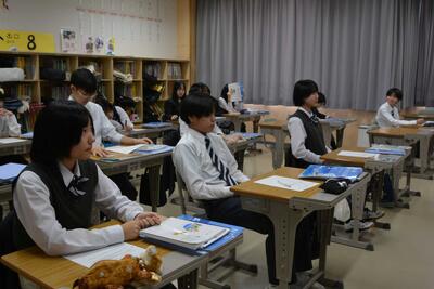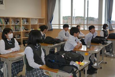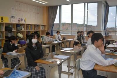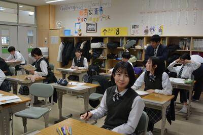 本日は、中2が利尻高校へ体験入学に行きました。学校説明の他に、体験授業(理科と国語)や部活動見学もありました。鴛泊中や鬼脇中の生徒と一緒に、楽しく高校体験をして来ました。中1・中3は、いつも通りの6時間授業を頑張りました。