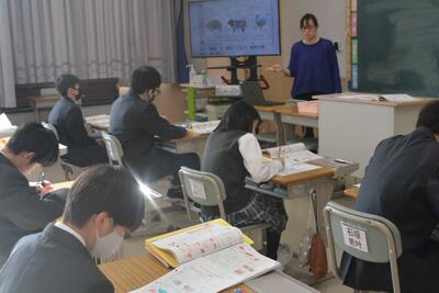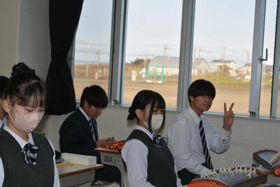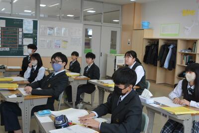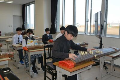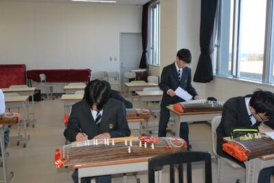 本日は、教員の研修(小中交流)のため午前授業でした。授業の様子を見に行くと、1年生は理科(地震について)、2年生は音楽(箏でさくらを演奏)、3年生は社会(経済のしくみ)を学習をしていました。楽しく学び、確かな学力を身に付けていってほしいと思います。