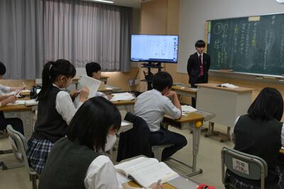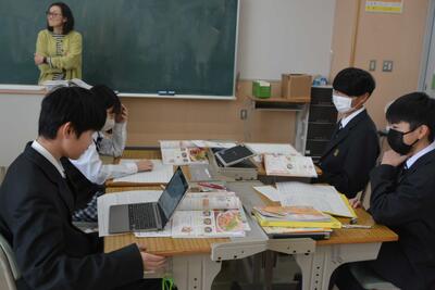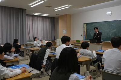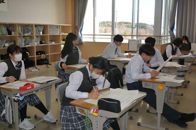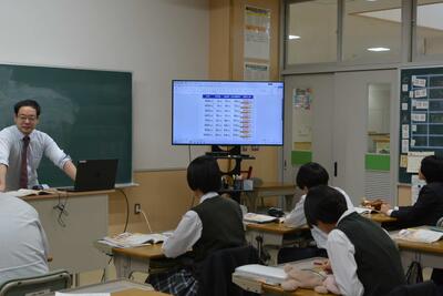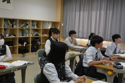 本日は通常の6時間授業でした。様子を見に行くと、皆、楽しく学習に向かい頑張っていました。1年生は音楽(合唱と箏)・2年生は国語(夏の葬列)・3年生は英語(関係代名詞)を学習していました。明日は午後から教員研修のため午前授業となります。今週もあと一日なので、元気に頑張ってほしいと思います。