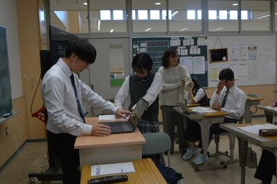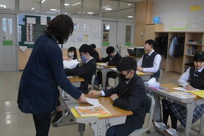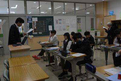 本日は、沓形小と仙法志小の6年生が来校し、中学校の授業(国語・理科・体育)を体験しました。朝は少し緊張していましたが、徐々にほぐれ楽しく授業に参加しました。廊下で会う先生や中学生にはしっかり挨拶をし、元気で明るい姿を見せてくれました。4月の入学が楽しみです!!そして利中生は、真剣に学習に向かう中学生らしい姿を見せていました。
