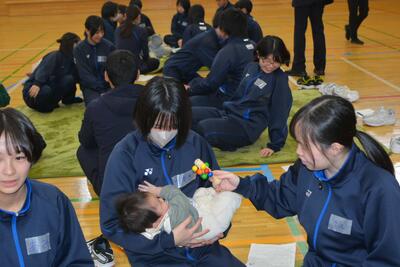 3年生は学活で「赤ちゃんふれあい体感」がありました。かわいい赤ちゃんと触れ合い、お母さんの思いを聞き、命の大切さや親への感謝を改めて感じさせられました。1年生は家庭科で調理実習に向けて(ハンバ-グ・ブロッコリ-サラダ)、2年生は総合で「昆布だしを使った料理」を学習しています。